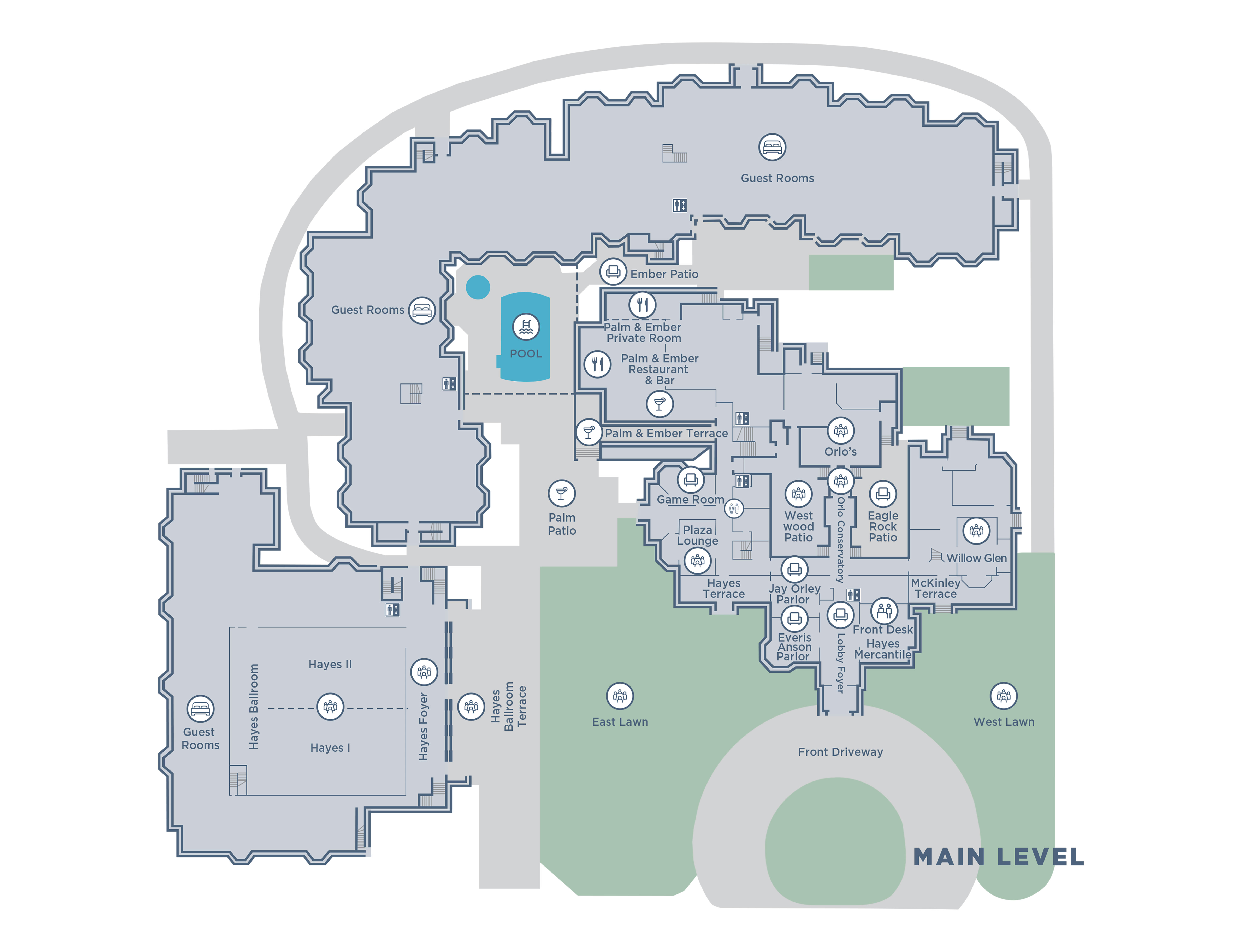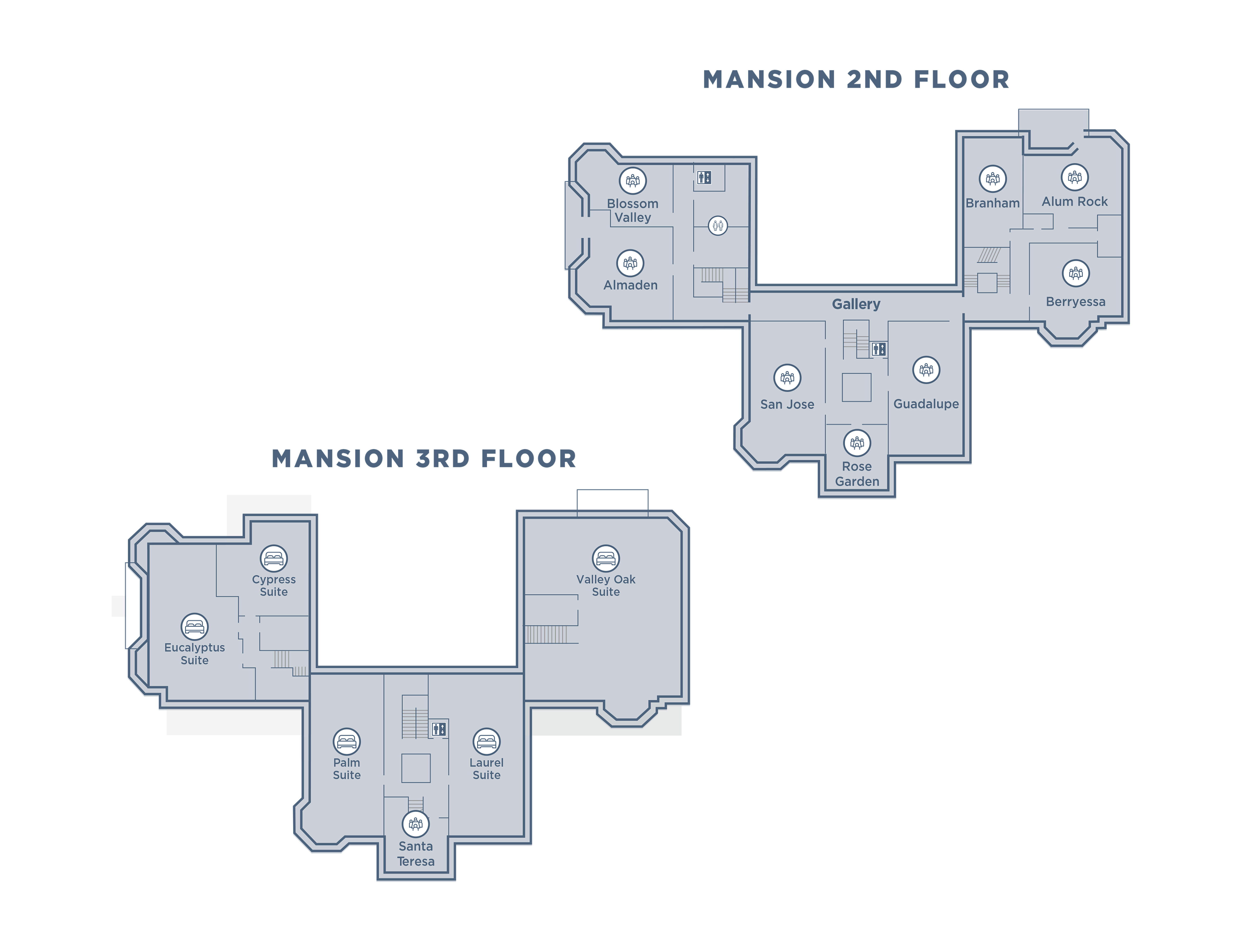 Explore the versatile event spaces at Hayes Mansion, complete with detailed floorplans and capacity charts designed to help you find the perfect fit for your meeting or special occasion.